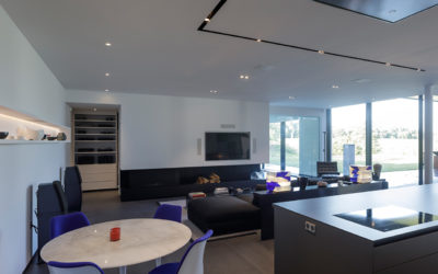 We worked together on this contemporary project where precision and attention to detail was paramount. We worked with all trades on site routing services within the tight constraints set by the site. Luxury trimless fittings from Delta Light and Collingwood were specified by the architect creating a sleek, minimalist look. We built a good working relationship with our client who was delighted with the finished project.